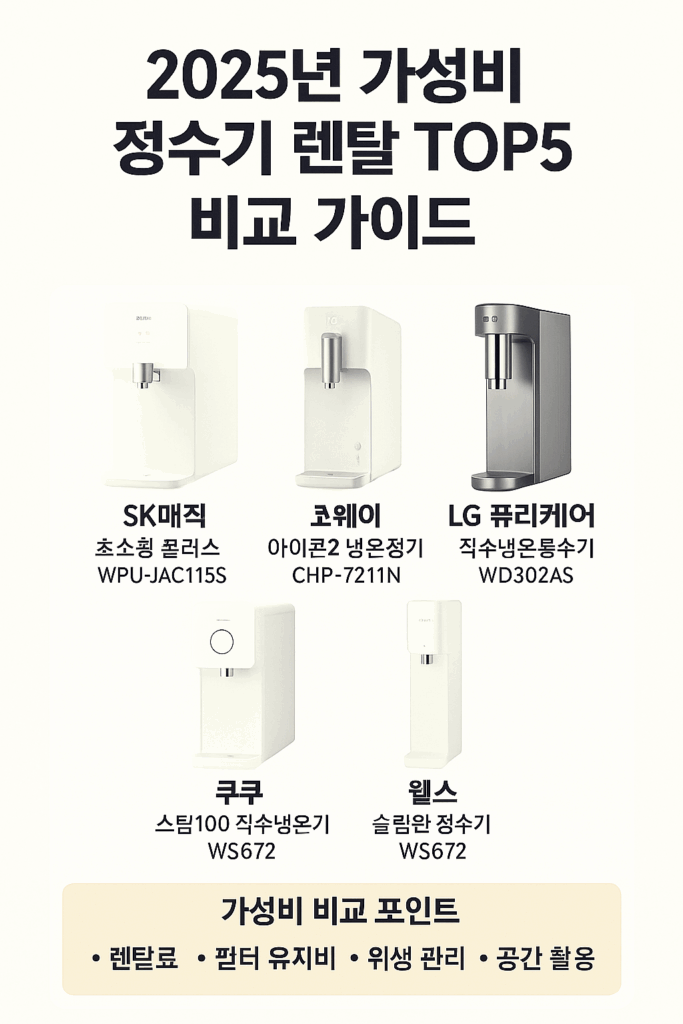 2025년 가성비 정수기 렌탈 TOP5 비교 가이드 깨끗한 물은 우리 일상에서 빼놓을 수 없는 필수 요소죠. 하지만 정수기를 구매하려면 초기